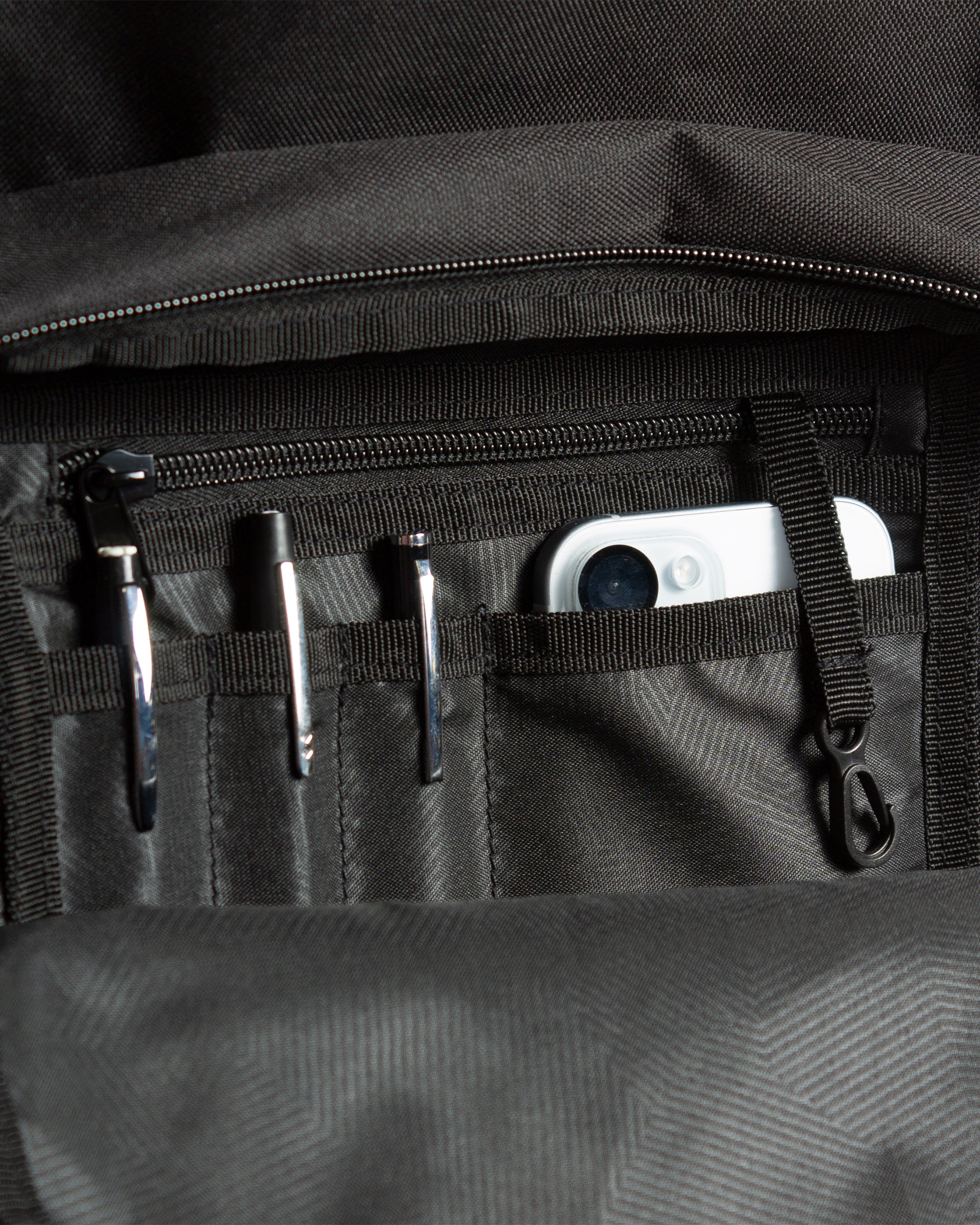 Everything you need and nothing you don’t. the Volcom Upperclass Backpack features?three main compartments. a padded laptop sleeve in the main compartment. and ergonomic. mesh lined shoulder straps?for a comfortable carry.