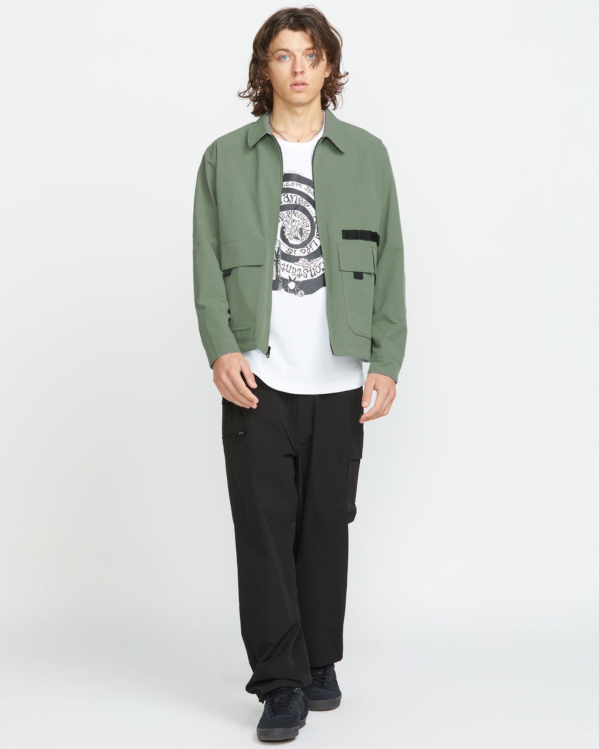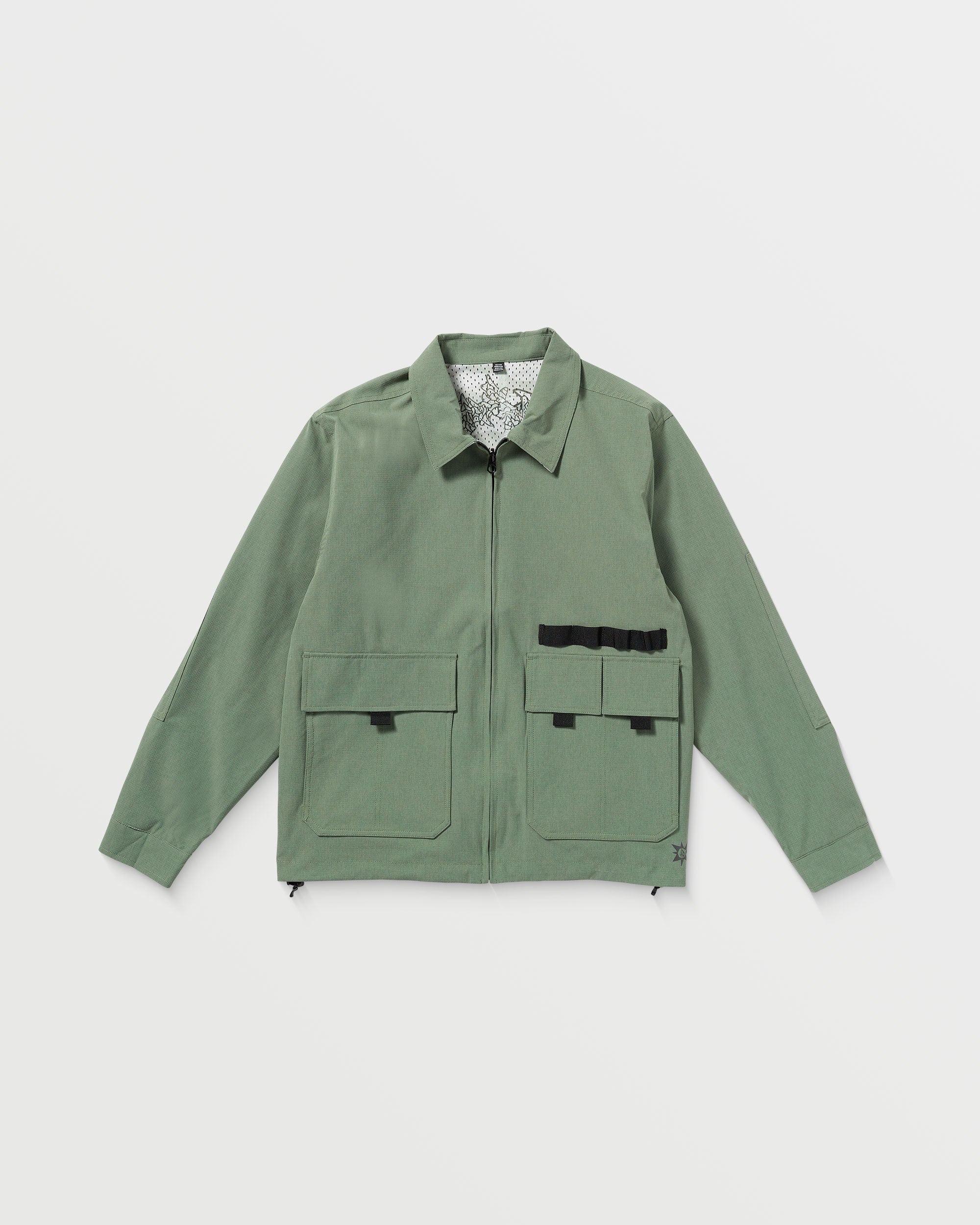 Lightweight and reversible. this water-resistant jacket fuses military utility with artistic flair. featuring reflective detailing. multiple pockets. and an interior mesh print. Stay dry in style with Volcom’s signature Japan branding.