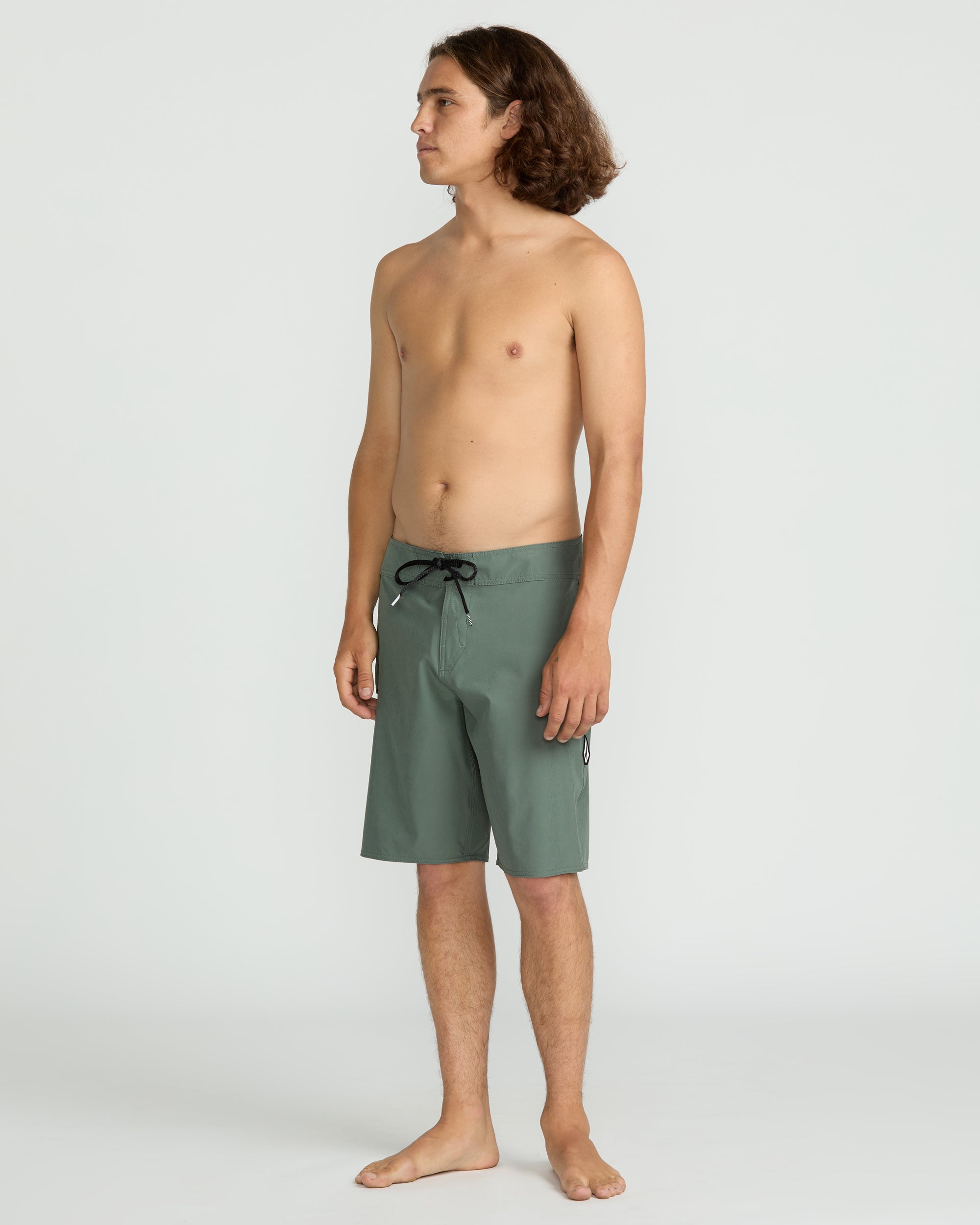 Stylish stretch trunks redefine comfort with 4-way recycled polyester-elastane blend. Signature label. cinch fly. and side pocket add modern flair to these summer-ready boardshorts.