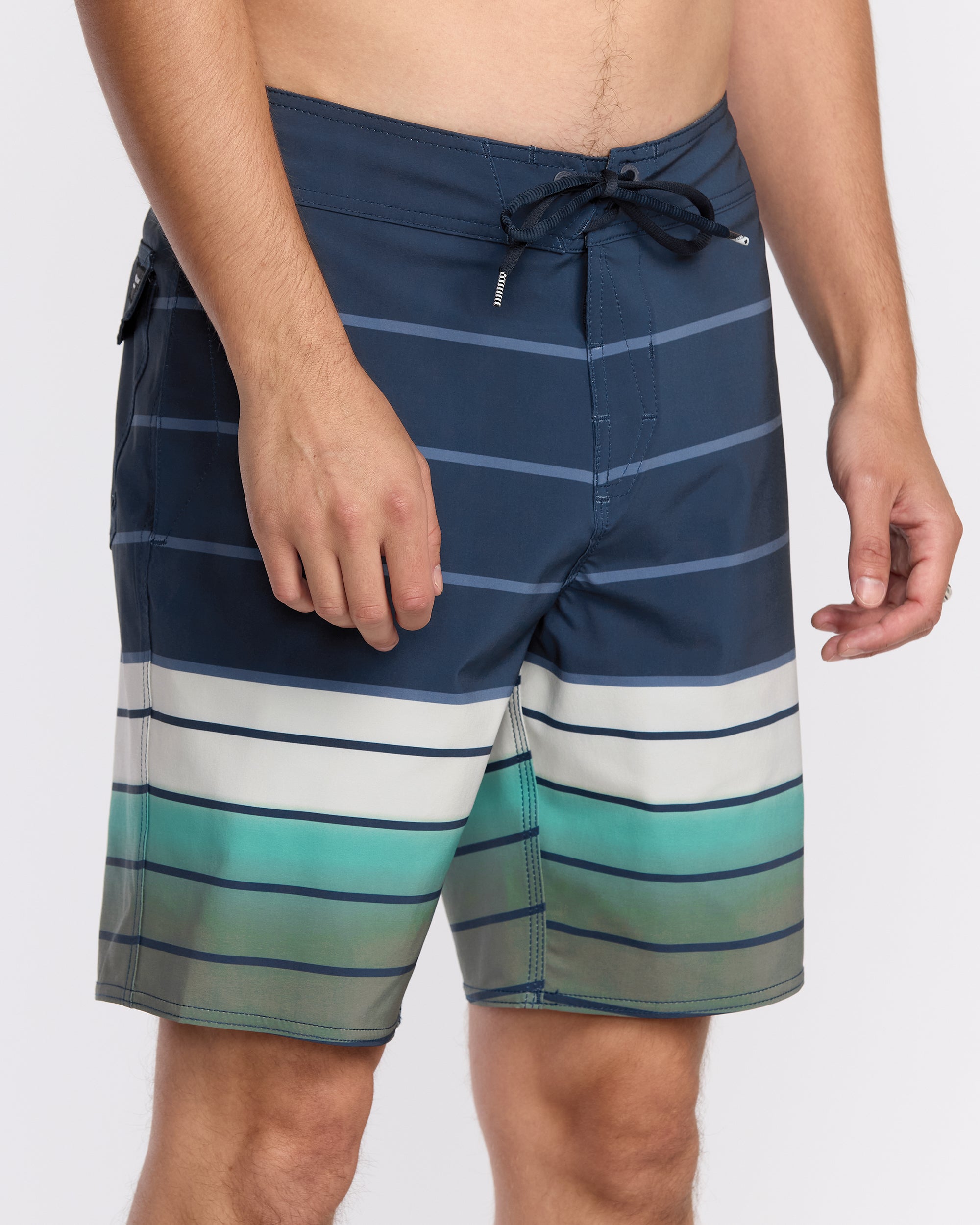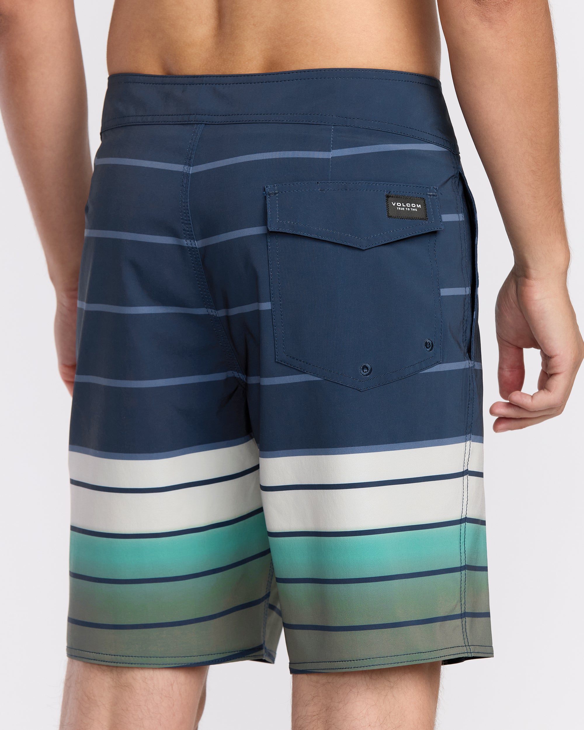 Polyester-elastane blend trunks with sporty 8.75 inseam. back patch pocket. side hand pockets. and cinch fly. Signature woven labels.